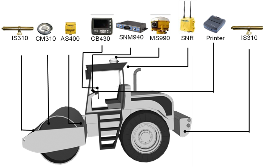 采用先进的定位技术,实时、准确获知压路机的三维位置,传感器采集压实数据等信息进行记录和分析处理,以图形、数值等方式实时显示碾压区域的压实度值(CMV值)、碾压遍数、碾压厚度。