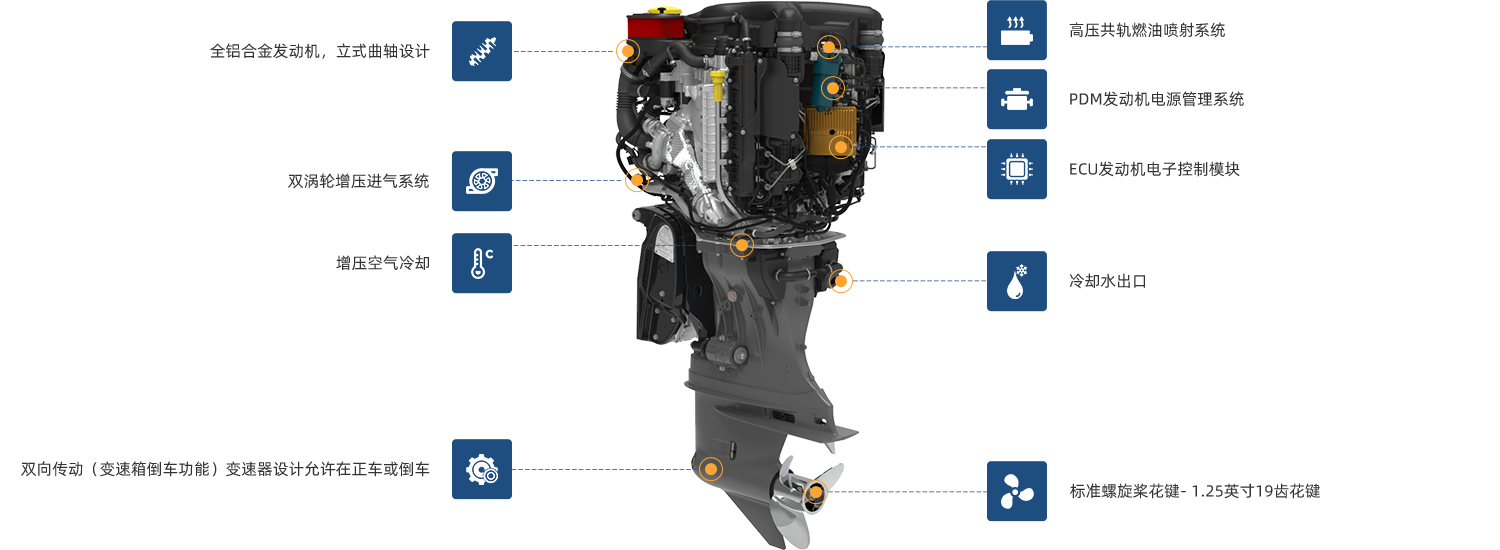 度,V8发动机的设计考虑到了可持续创新,是一款燃油效率高、环保的舷外发动机。